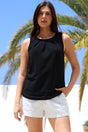 Genevieve Top - Crew Neck Sleeveless Linen Blend Top in Black
