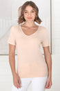 Mia T-Shirt - Soft V Neck Stretchy Tee in Beige