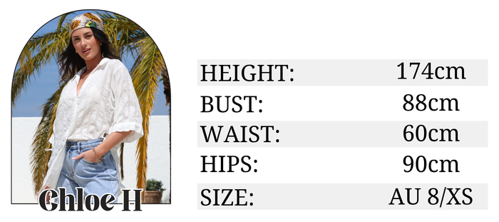 *All sizing is listed in Australian sizes and measurements are listed in centimetres and measured by hand at Salty Crush HQ.