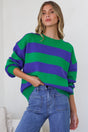 Atlantic Jumper - Crew Neck Relaxed Stripe Knit with Ribbed Hemlines in Green
