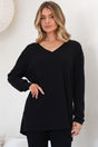 Mayanna Jumper - Light Weight V Neck Knit Jumper with Side Splits in Black