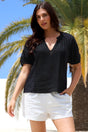 Elevate your everyday with the Geneva Top, featuring intricate cut-out detailing on the sleeves and sides that beautifully complements its relaxed silhouette. This versatile piece effortlessly blends sophistication with charm, making it a perfect addition to any wardrobe.