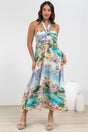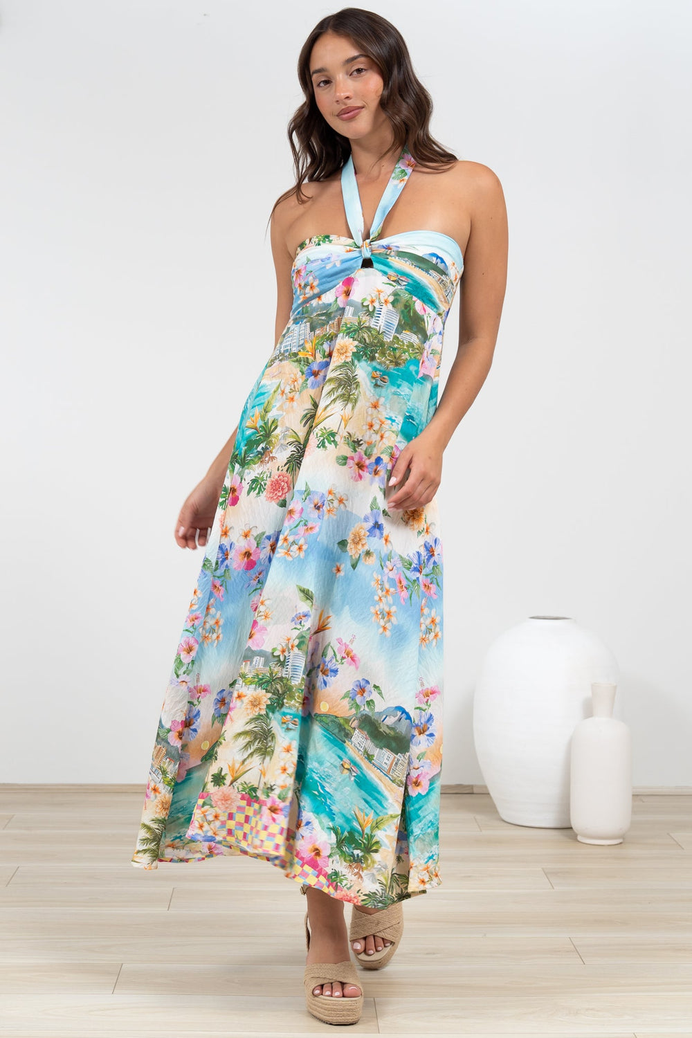 Solie Midi Dress - Halter Neck Dress with Elasticated Back in Pina Colada Print