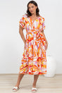 Bosco Midi Dress - V-Neck Tiered Dress with Waist Tie in Fallon Print
