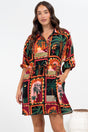 Marsdan Mini Dress - Collared Buttoned Bodice Pull Tie Waist Dress in Casablanca Print