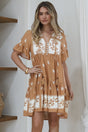Abilia Mini Dress - Mandarin Collar Smock Dress in Lucinda Print Tan