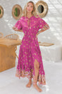 JAASE - Elsa Maxi Dress: Lace Detailed Bodice with Pull Tie Waist Dress in Bee Orchid Print