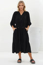 Kamali Midi Dress - Batwing Sleeve Smock Dress with Lace Detailing in Black