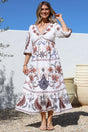 Thanya Midi Dress - V-Neck with Tie Balloon Sleeve Tiered Dress in Magah Print