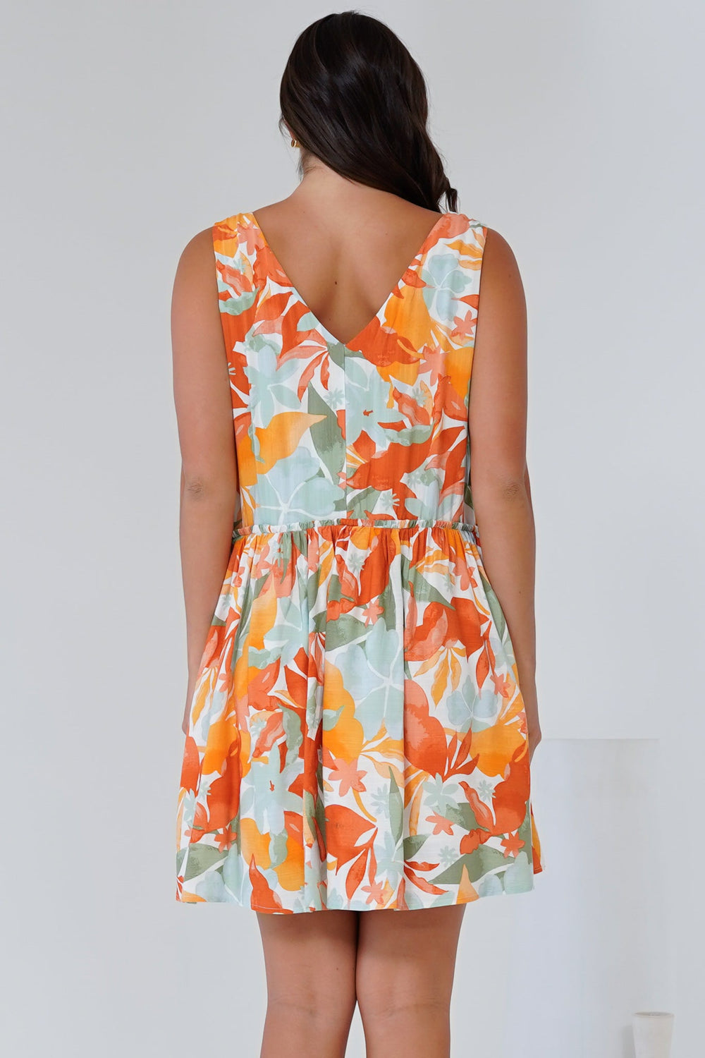 Morgan Mini Dress - Keyhole Detail Sun Dress with Pockets in Vondra Print