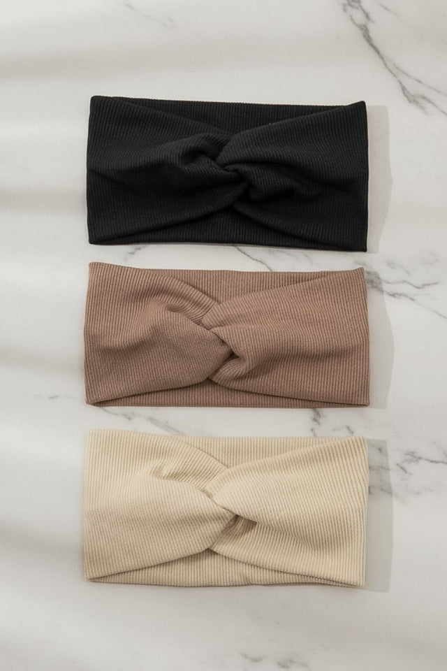 Wells Headband 3 Pack - Twist Knot Detail in Neutral Multi
