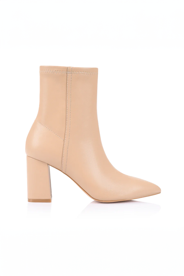 Introducing Verali's veganĀ Max, a dress ankle sock boot designed with a block heel and pointed toe to elevate your outfit.