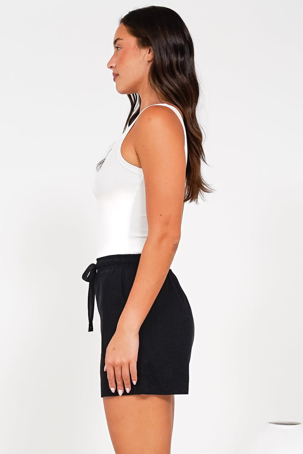 Stratton Shorts - Elasticated Tie Waist Shorts with Pockets in Black