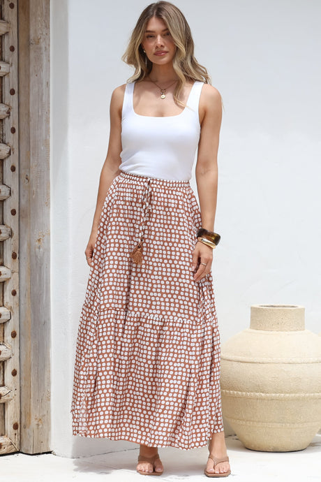 Hellen Maxi Skirt - High Waisted Skirt with Front Splits in Maryanne Print Tan