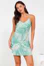 Tennyson Mini Dress - Slip Sun Dress with Soft V-Neckline in Valentine Print Green