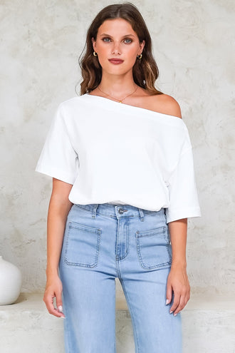 Dolce Top - Asymmetric Neckline Boxy Top with Side Split in White