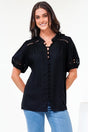 Alenna Shirt - Mandarin Collar Cut Out Detailed Short Sleeve Button Down in Black