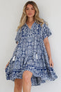 Abilia Mini Dress - Mandarin Collar Smock Dress in Harley Print Blue