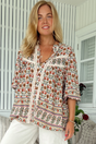 JAASE - Bee Blouse: Lace Decal Button Down 3/4 Sleeve Blouse in Harlowe Print