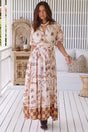 Emerson Wrap Maxi Dress - Balloon Sleeve Kimono Wrap Dress in Tuscan Sands Print