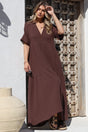Laysa Maxi Dress - Mandarin Collar Buttoned Bodice Short Sleeve Dress in Chocolate