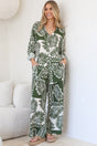 Sibelle Set - Collared Button Down Shirt and Pant Set in Sunny Print Green