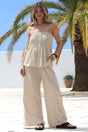 Vanity Two Piece Set - Strapless Pleated Top and Long Pants in Oatmeal