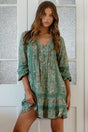 JAASE - Abio Mini Dress: V-Neck Lace Detailed Button Down with Long Sleeves in Sagewood Print