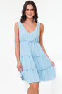 Lacy Mini Dress - Tie on Shoulder Strap Frill Splicing Tiered Sun Dress in Light Blue