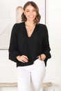 Albany Top - Pleating Details Pull Over Top With Long Balloon Sleeves In Black