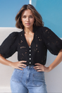 Clare Blouse - Hollow Out Embroidered Button Down Blouse in Black