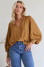 Perrio Blouse - Frill Collar Button Down Balloon Sleeve Shirt in Tan
