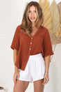 Your new favourite wardrobe staple has arrived. Introducing our new Shelly Shirt in Rust - the perfect top to pair with your go-to denim pants on a night out, or vibe it casual during a day at the beach.