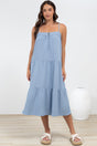Fintan Midi Dress - Sqaure Neckline Tiered Sun Dress in Blue