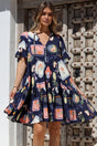 Monique Mini Dress - Mandarin Collar Smock Dress in Kalil Print Navy