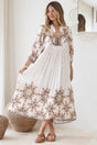 Boheme Midi Dress - Piping Defined Bust 3/4 Sleeve Smock Dress in Grenache Print