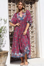 Boheme Midi Dress - Piping Defined Bust 3/4 Sleeve Smock Dress in Grenache Print