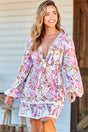 North Mini Dress - Deep V-Neck A-Line Dress with Lace Trims in Acadia Print