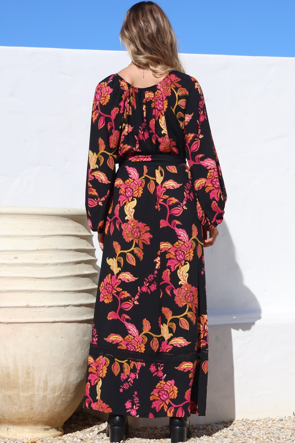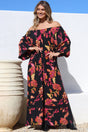 Tai Maxi Dress - On or Off Shoulder Dress with Matching Belt in Valerie Print