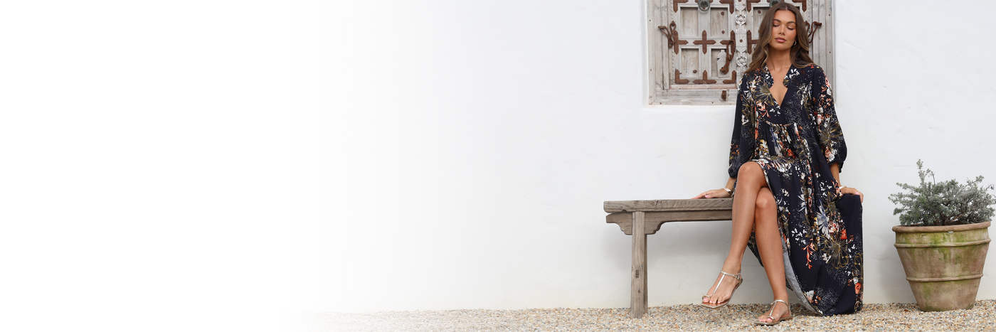 Eve Midi Dress - V Neck Tiered Dress with Optional Waist Tie in Indigo Print