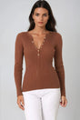 Emilia Knit Top - Gold Button Neckline Ribbed Top in Beige