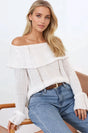 Rayra Knit Top - Multiway Neckline Knit Top with Flute Sleeves in White