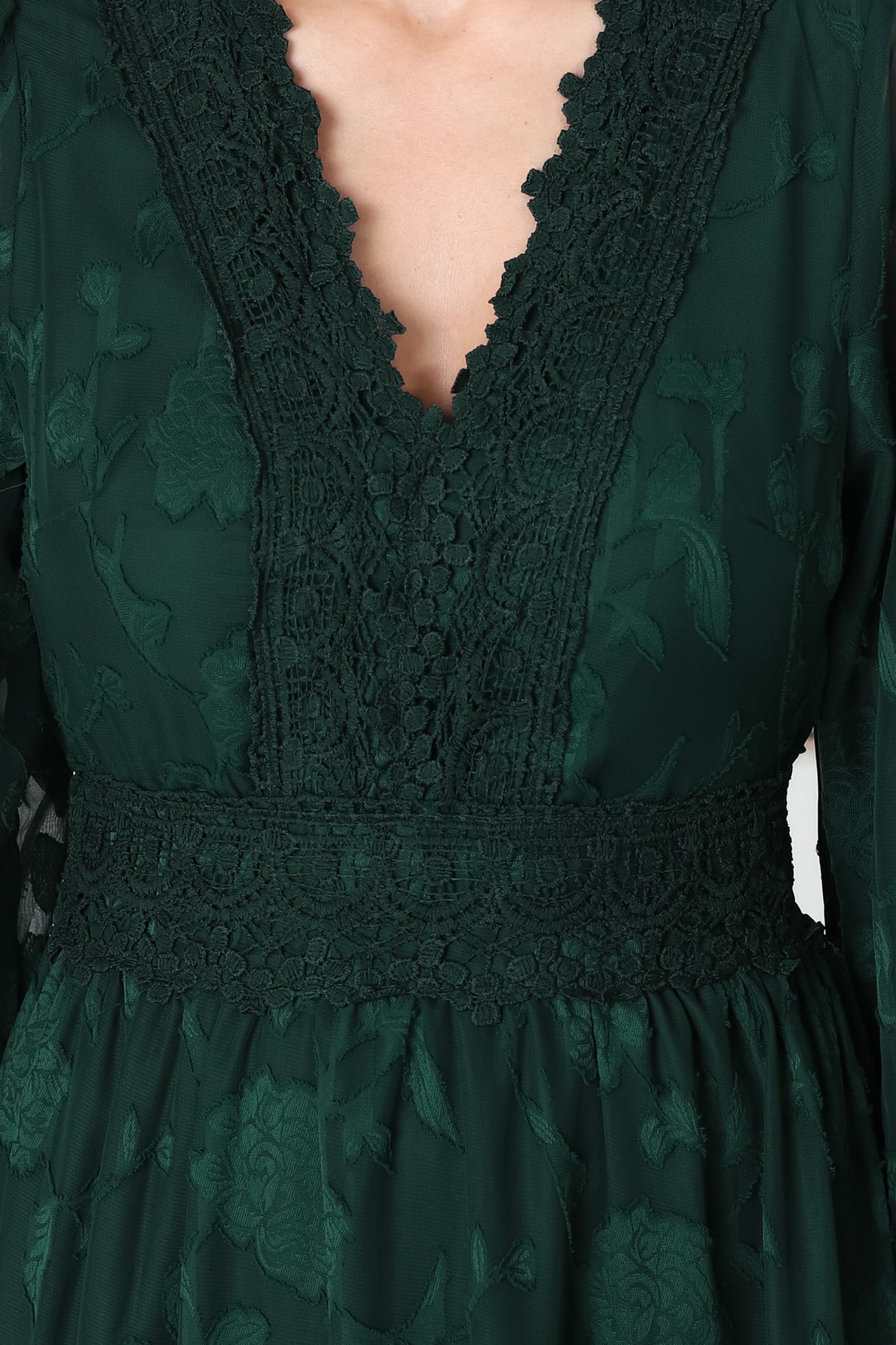 Introducing our stunning Rouge Maxi Dress in Emerald, where elegance meets allure in every stitch. Envelop yourself in layers of luxury with this exquisite long balloon sleeve lace overlayed masterpiece.