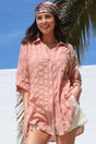 Beachly Mesh Shirt - Cotton Mesh Stripe Relaxed Button Down Shirt in Blush