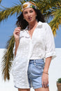Beachly Mesh Shirt - Cotton Mesh Stripe Relaxed Button Down Shirt in White