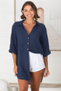 Beachly Shirt - Folded Collar Button Down Relaxed Shirt In Navy