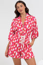Marylin Playsuit - Collared Button Down Playsuit with Rope Pull Tie Waist in Lynne Print