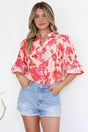 Alyce Shirt - Mandarin Collar Cut Out Detailed Sleeve Button Down in Larissa Print