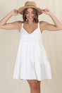 Missy Mini Dress - Thick Adjustable Strap Tiered Sun Dress in White