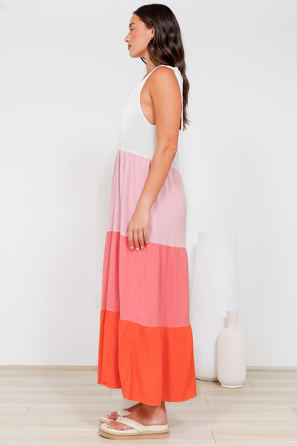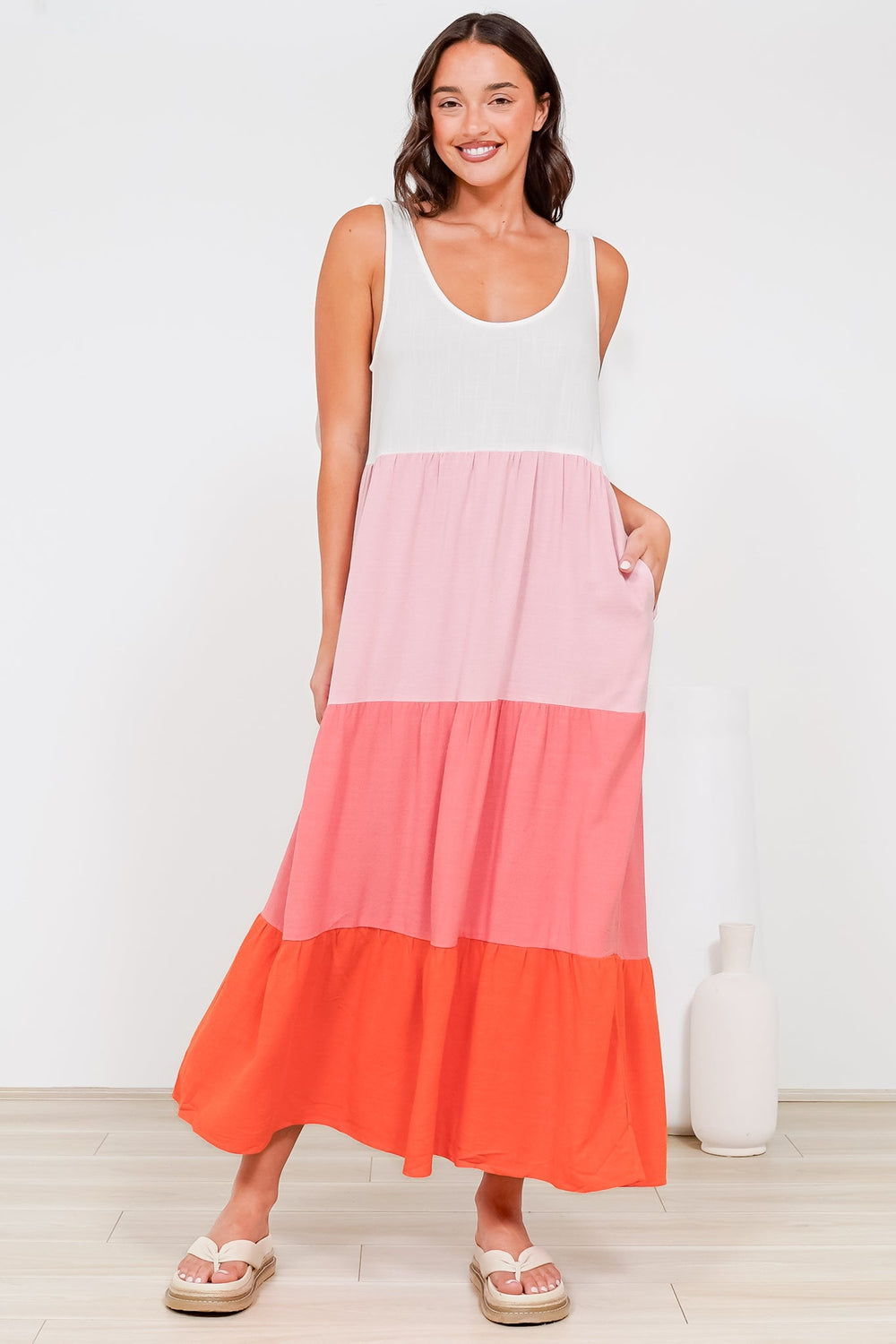 Verona Midi Dress - Tie at Shoulder Straps Sun Dress in Pammy Stripe Print Pink